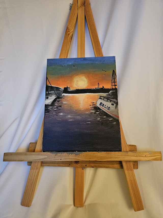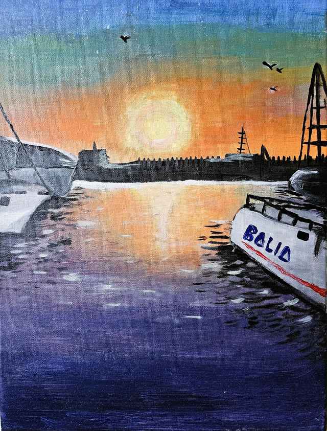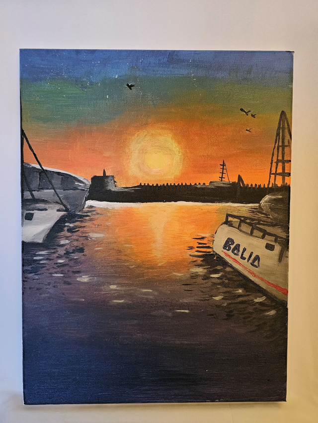 A vibrant sunset over a Sothern French harbour depicted on a warm summer's evening