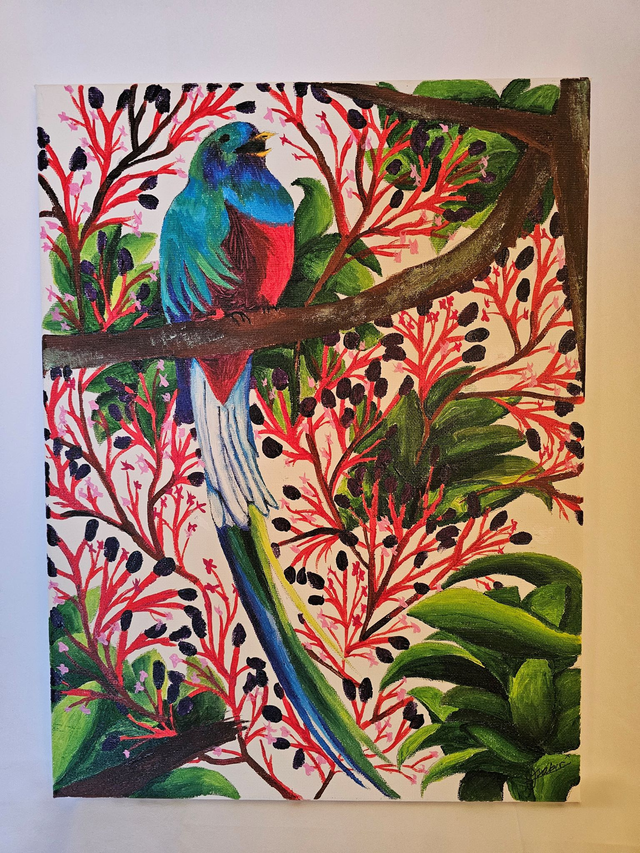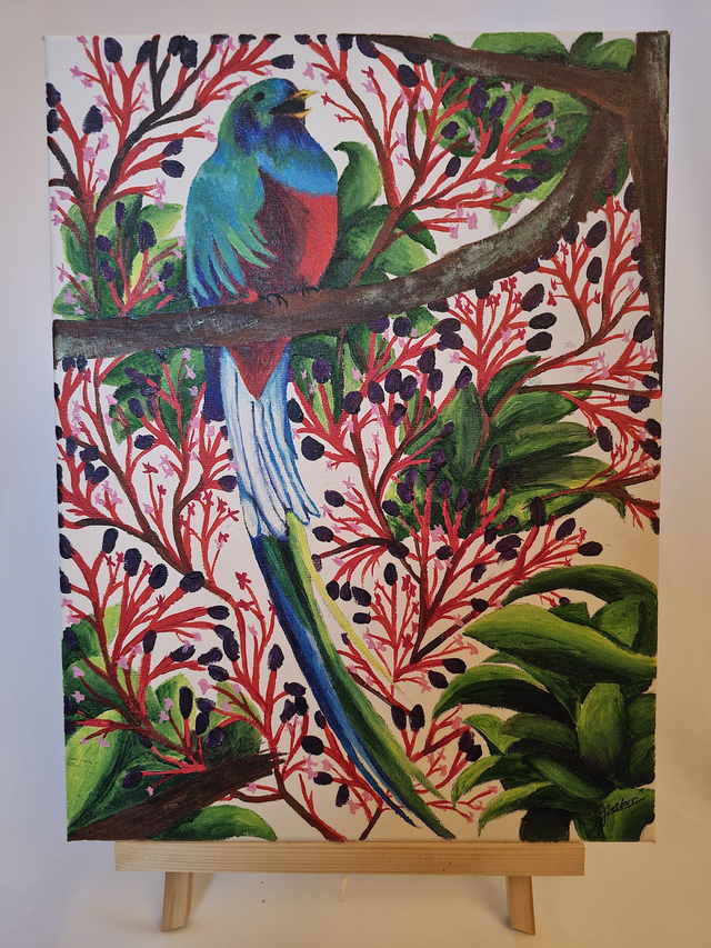 The Resplendent quetzal is a stunning bird with vibrant feathers of blues, crimsons, and bright greens. It lives in tropical, mountainous areas such as some places in Mexico and South America and love areas with plenty of fruiting trees. They are relatively shy and only come out in early dawn.